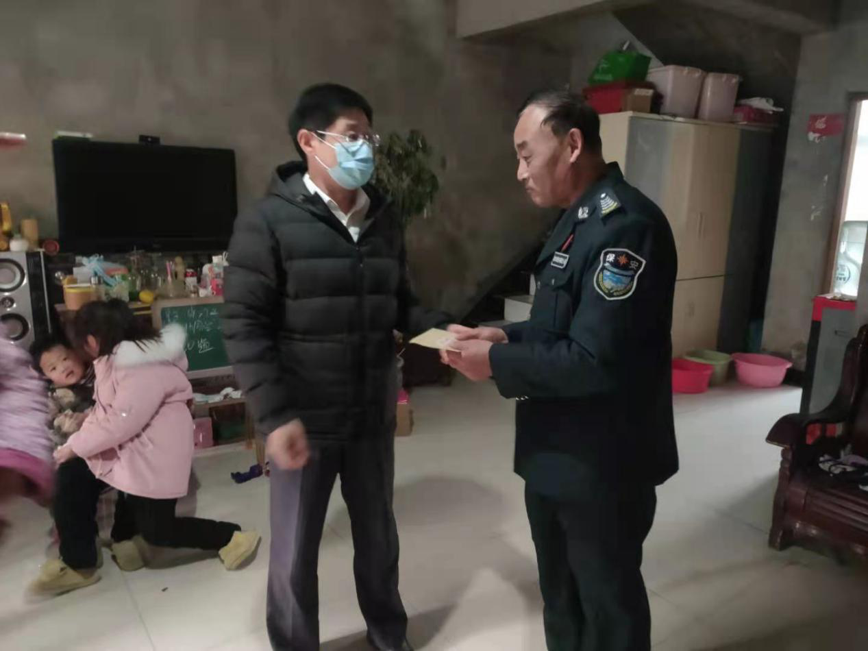 春节将至,2021月2月4日下午,集团公司党委委员、副总经理韩圣彪一行看望慰问保安公司困难党员王裕建和困难职工孙冠军、余伟,并送去组织的关怀和温暖。