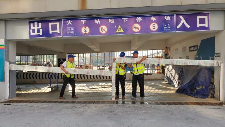 最后,在火车站地下停车场开展了防汛应急演练,组织停车场工作人员快速安装和拆卸阻水板,确保在暴雨期间能够顺利开展防汛工作。
