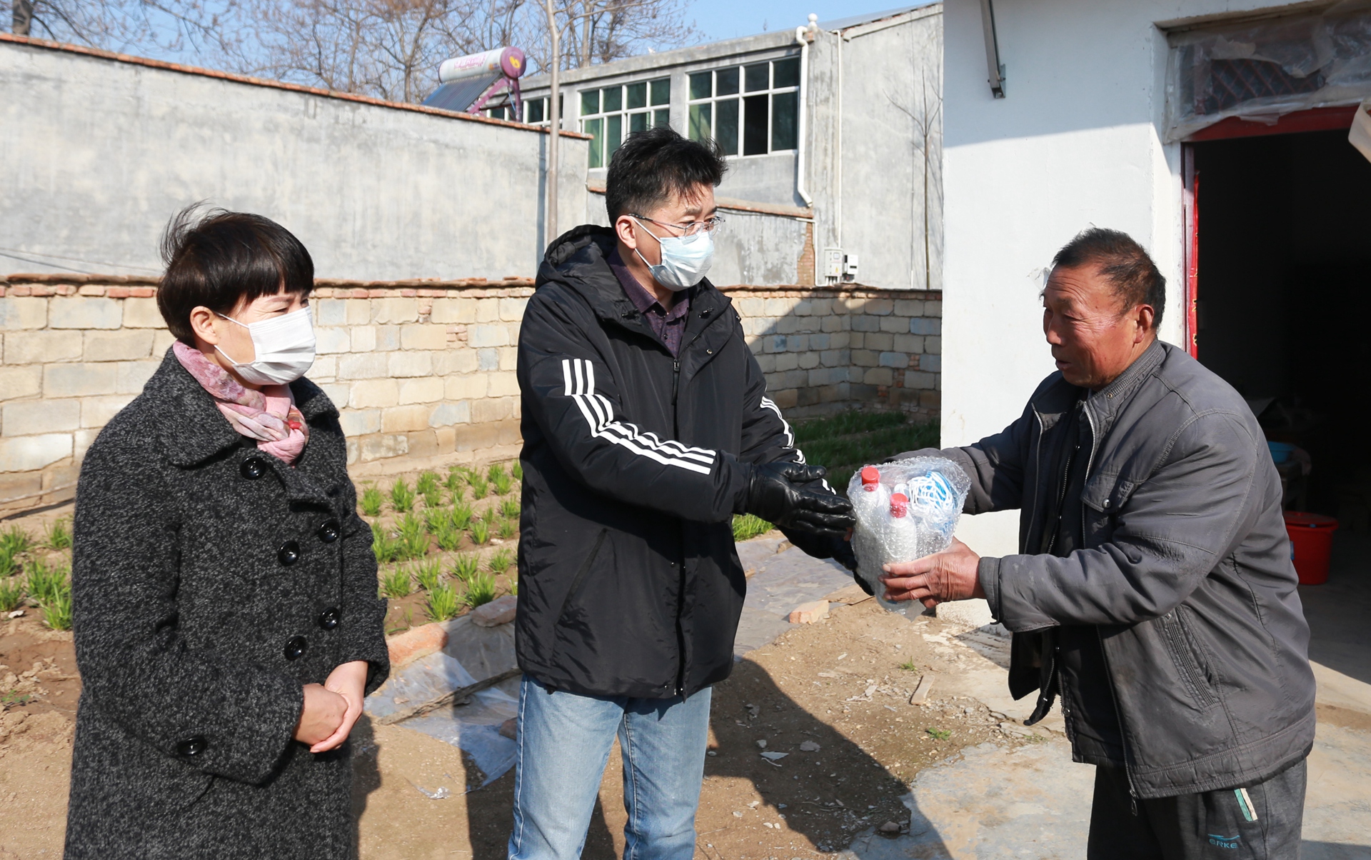 3月5日上午,市建投集团党委委员、纪委书记王献忠、纪检监察审计部部长赵明灵一行来到火神庙村,为帮扶对象黄传平、丁配久家送来口罩、酒精和消毒液等抗疫防护物资。
