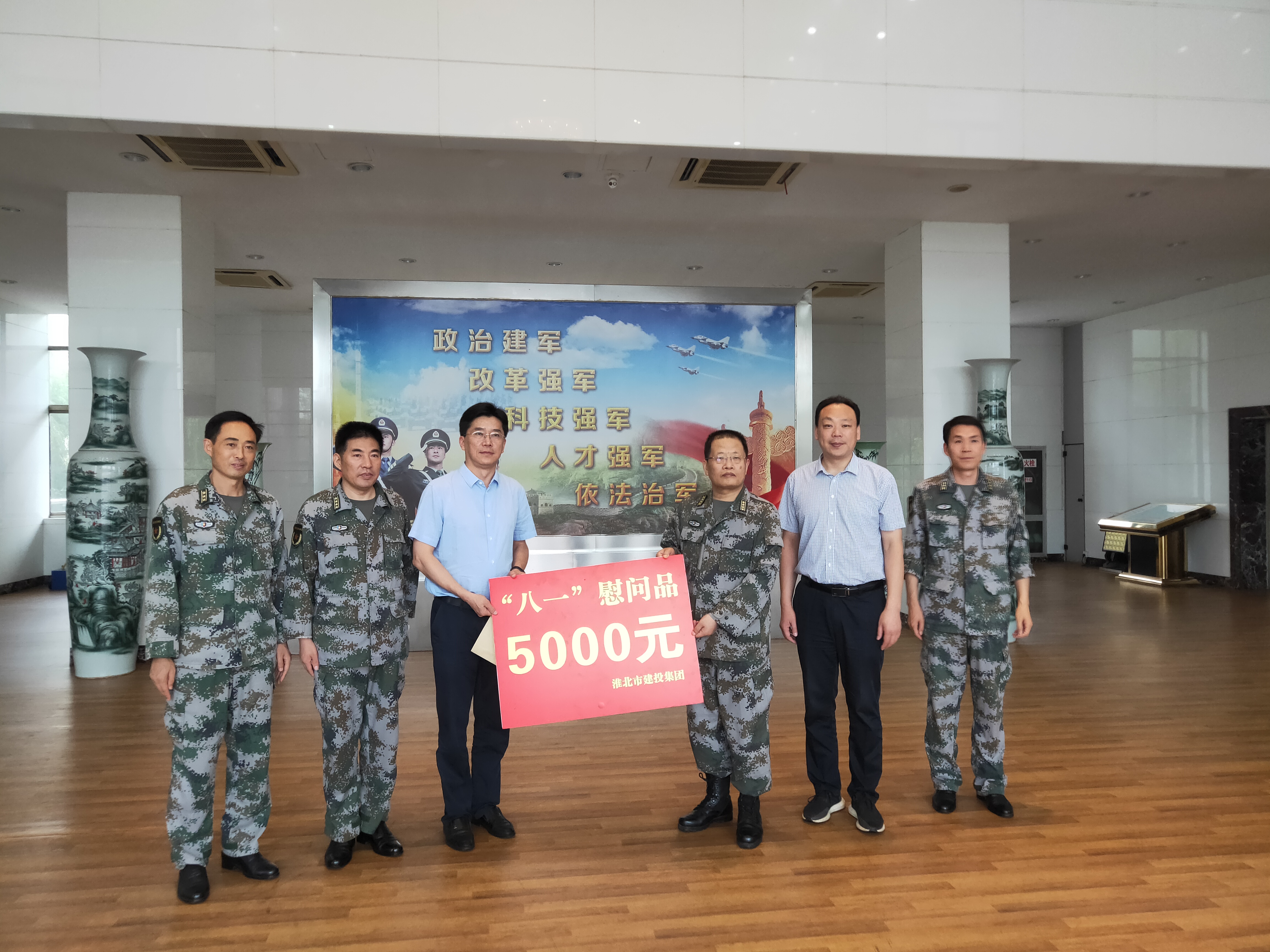 为进一步弘扬拥军优属、拥政爱民的光荣传统,在八一建军节即将来临之际,7月31日上午,淮北市建投集团纪委书记王献忠带队走访慰问淮北军分区,向广大官兵、指战员致以崇高敬意,并送去节日祝福和慰问品。