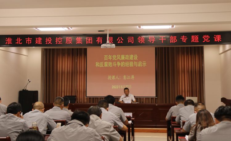 为深化干部教育培训改革创新,弘扬理论联系实际的作风,按照建投集团党委的安排部署,5月27日上午,集团公司纪委书记彭江涛、淮海建工公司总经理王平分别在公司四楼会议室讲授专题党课。