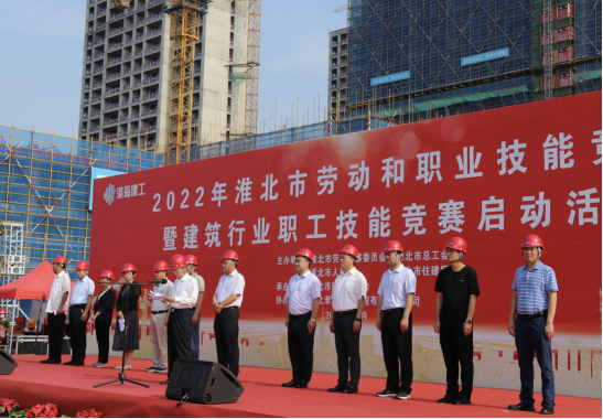 为进一步推进我市技工建设,加快高技能人才培养选拔,促进高质量就业,2022年7月14日上午,由淮北市劳动竞赛委员会、淮北市总工会、淮北市人社局、淮北市住建局主办,淮北市建筑业协会承办,淮海建工公司协办的2022年淮北市劳动和职业技能竞赛暨建筑行业职工技能竞赛在淮北桃花源工程项目部举行。省、市有关部门领导,市建筑业协会和淮海建工公司领导出席竞赛启动仪式。