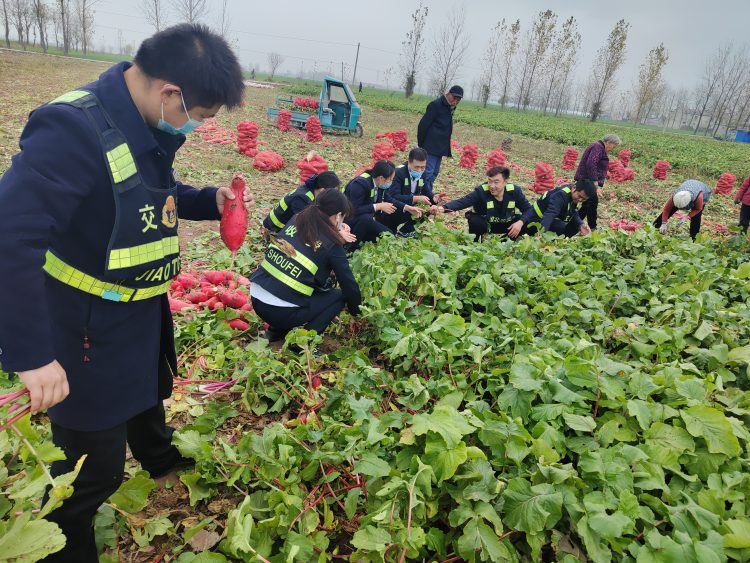 今年11月正值萝卜上市的关键时期,可是偏偏遇上疫情来袭,愁坏了临涣镇前袁楼村的农户,因缺少劳动力,销售渠道也减少,萝卜滞销。坚守在S202收费站的党员干部了解到该情况后,在积极应对疫情防控的同时,主动对接农户,收费之余组织站内员工来到田间地头,在农户的指导下,协助采收、打包、搬运,大家忙得热火朝天。本次助农活动,不仅收获了劳动丰收的喜悦,劳作之余,在场的每名员工还自掏腰包购买滞销萝卜,用实际行动为群众办实事,办好事,为乡村振兴贡献了微薄之力,受到当地百姓的一致好评。