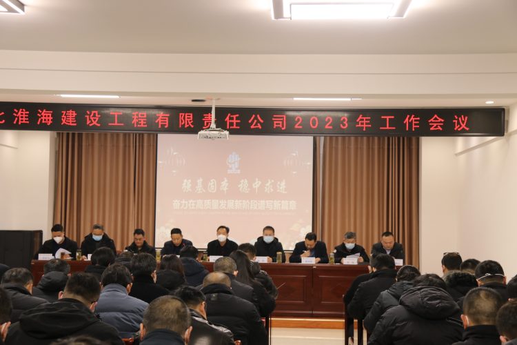 2023年1月14日,淮海建工公司在四楼会议室召开2023年度工作会议,淮海集团领导、公司领导班子、部门及项目部负责人、劳务班组代表、优秀员工代表参加会议。