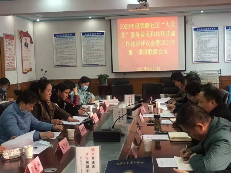 会上铁路社区通报了2020年度铁路社区的工作开展情况,各成员单位分别进行了述职,同时签订了2021年共驻共建协议书。