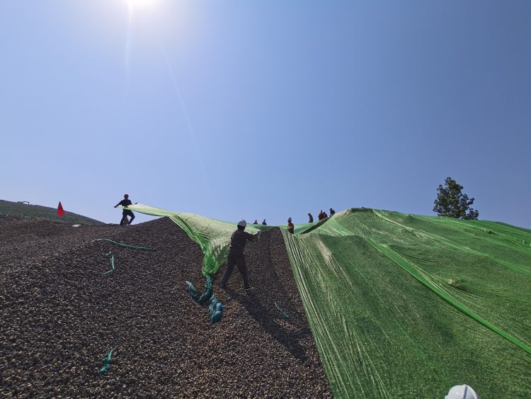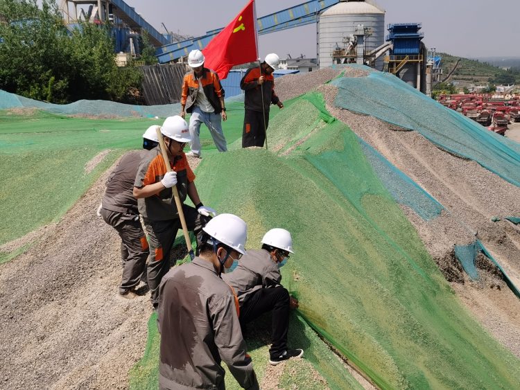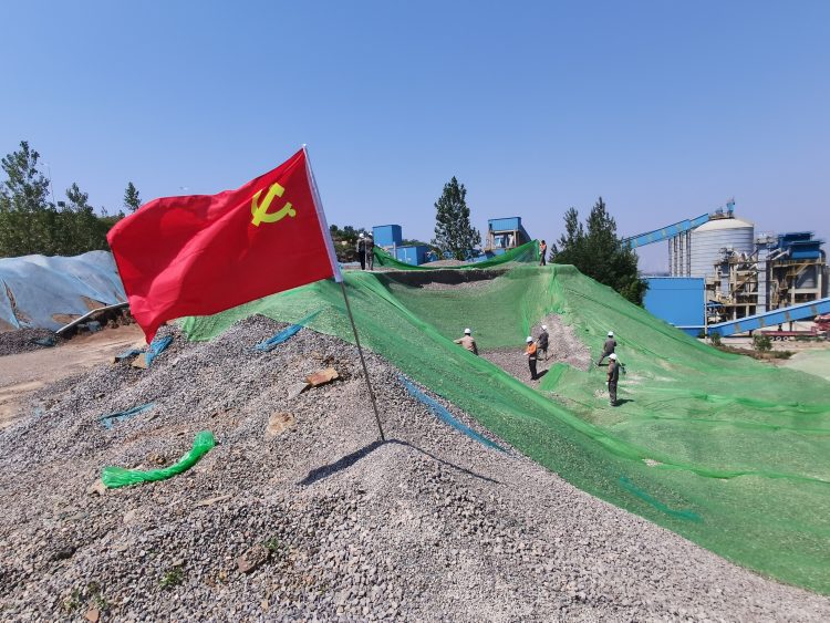 一个支部就是一座堡垒,一名党员就是一面旗帜,行动是最有力的带动,示范是最鲜明的垂范。为牢固树立绿色矿山发展理念,坚决贯彻落实“绿水青山就是金山银山”政策,2023年6月8日上午,通鸣党支部组织党员同志到汽修房处对裸露在外的石料进行防尘网的覆盖,党员同志们冒着酷暑,不畏炎热,冲锋在前,经过一上午的努力,最终克服困难顺利完成任务。通鸣党支部着力发展基层党组组织的战斗堡垒作用和党员的先锋模范作用,通鸣党支部始终坚守初心、担当使命,敬业爱岗,用自己的实际行动让党旗飘扬在最高处。