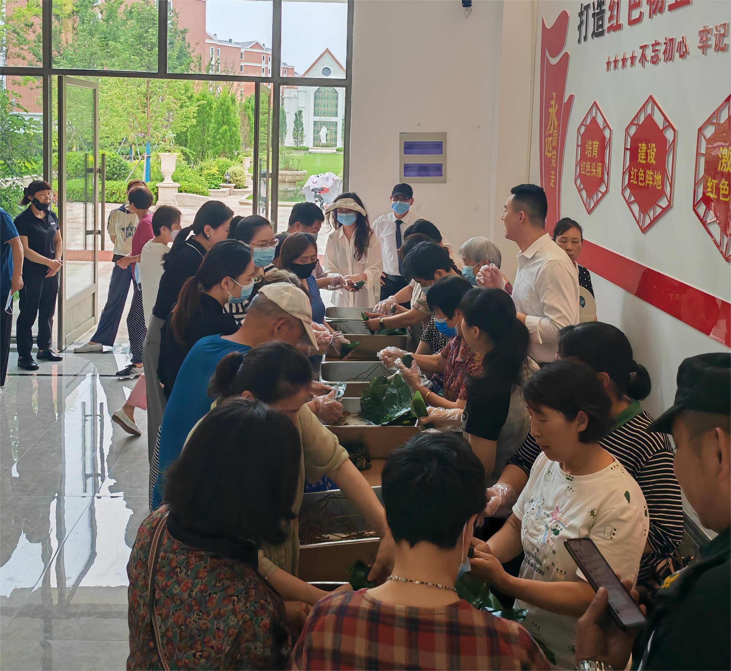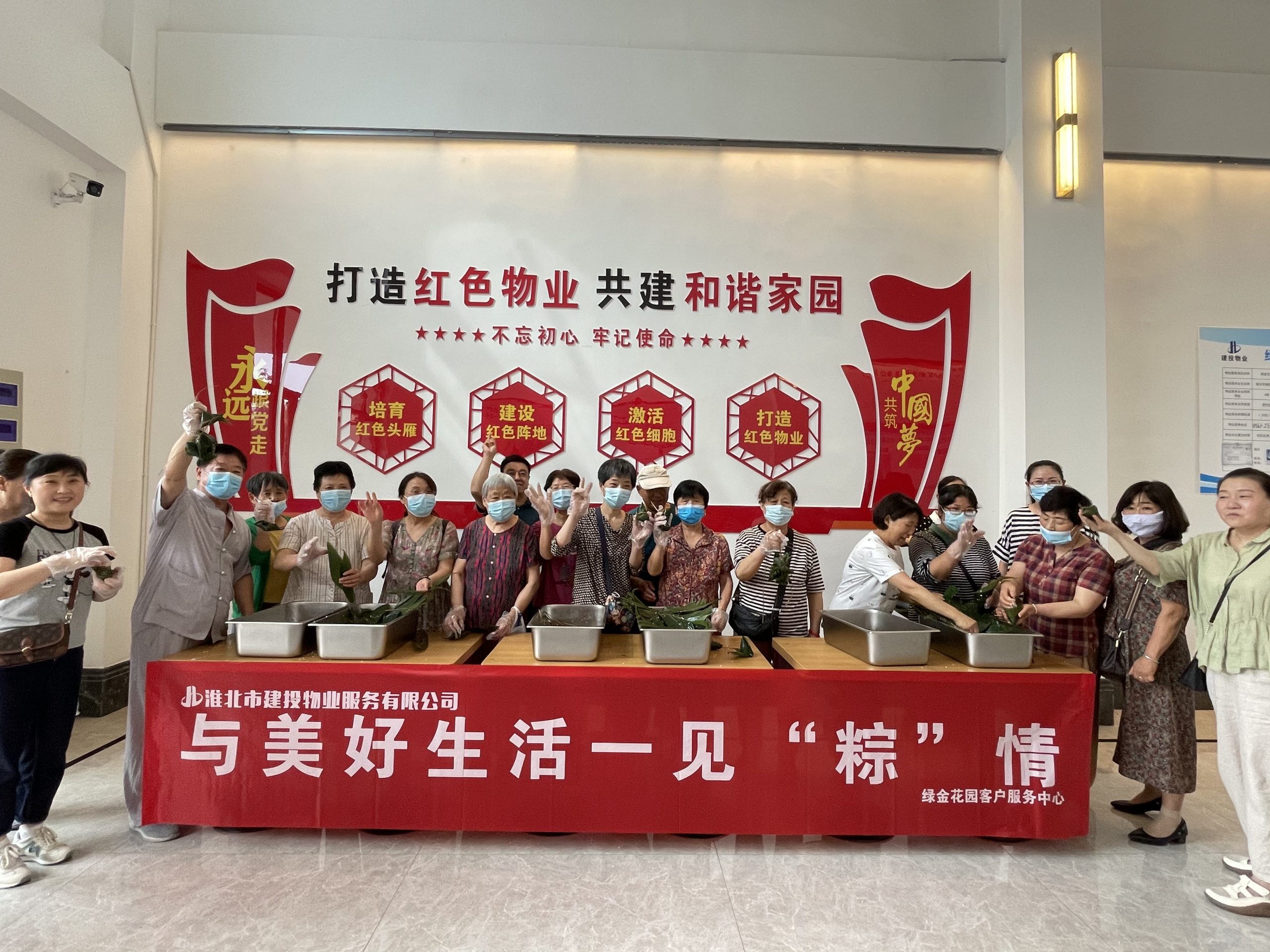 此次端午节社区文化活动,建投物业党员同志与应邀而来的业主朋友们一起,亲手包粽子,共度端午节。在阵阵糯米清香中,大家一起有说有笑,现场热闹非凡。当饱满的粽子呈现在眼前时,大家脸上流露出满满的成就感和喜悦之情。