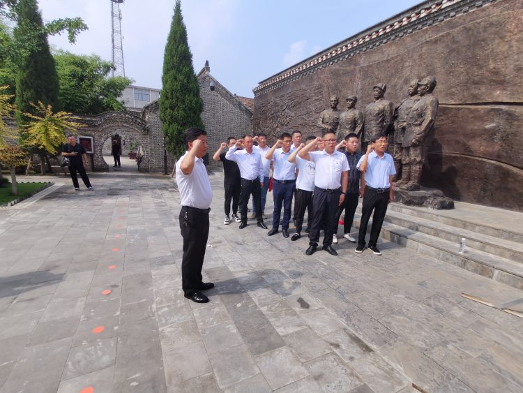 在解说员的带领下,全体党员参观了淮海战役总前委旧址各个展室,认真观看了淮海战役相关照片、实物等资料,深切感受老一辈无产阶级革命家和战士们不怕困难、英勇无畏、一往无前的革命精神。在淮海战役总前委刘伯承、陈毅、邓小平、粟裕、谭震林的巨幅浮雕前,通鸣党支部副书记刘鹏带领全体党员,面对鲜红的党旗,重温入党誓词。