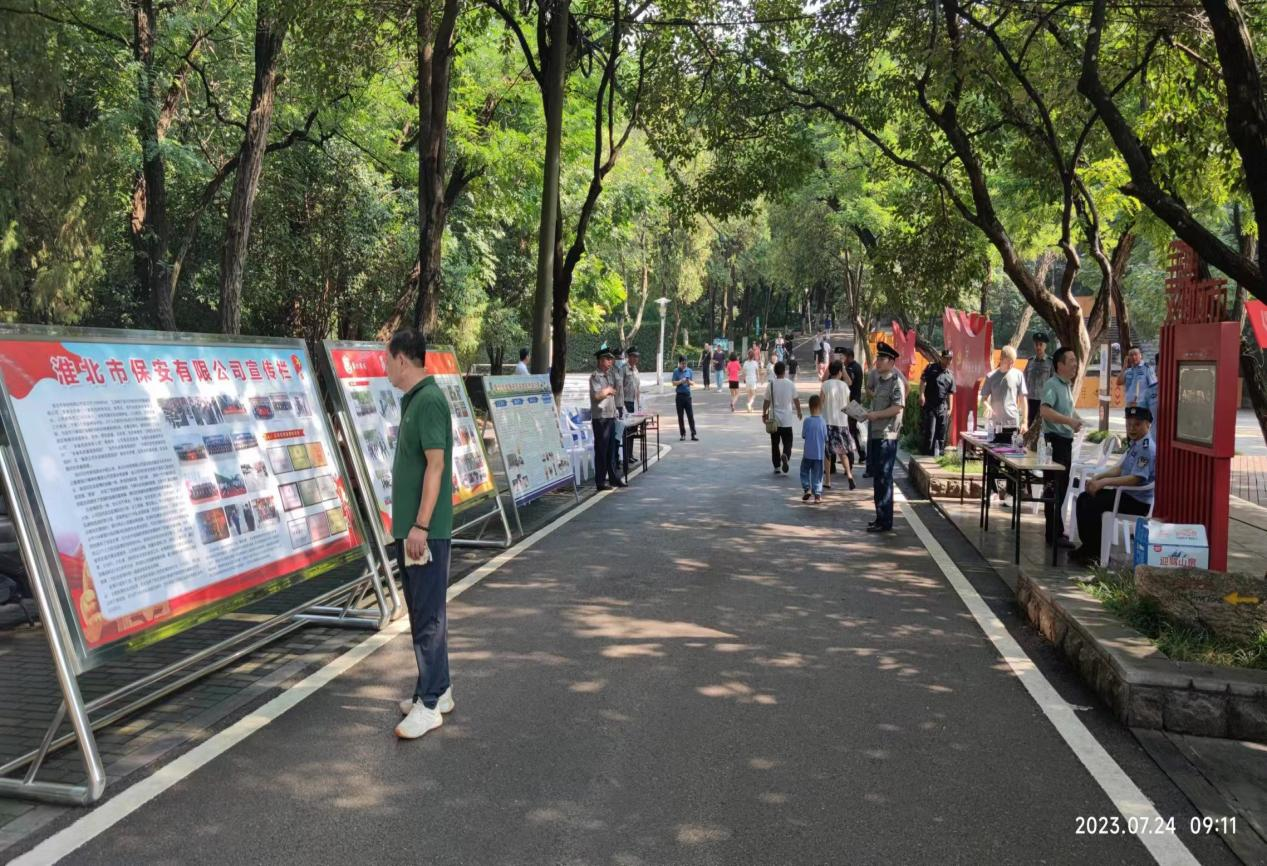 7月24日上午,为广泛宣传保安行业在维护社会和谐稳定、保障人民安居乐业、促进经济社会发展等方面取得的成效。淮北市保安监管支队、淮北市保安有限公司在相山公园组织开展以“保安心向党、护航新征程”为主题的保安行业宣传活动。市保安监管支队支队长孙兆良、政委曹辉、公司总经理吴信威、押运人防队员等13人参加了宣传活动。