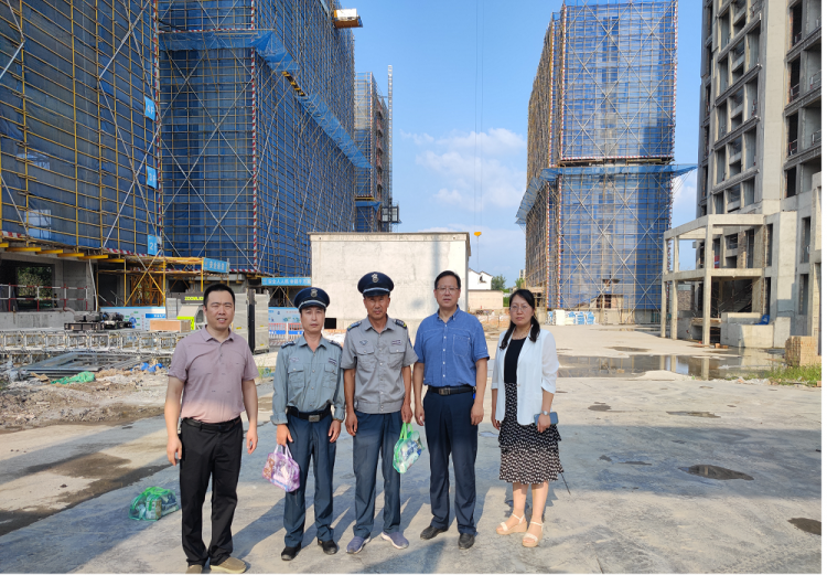 在工地现场,张立哲同志首先对高温下仍坚持工作的一线安保人员表示亲切的慰问,叮嘱大家在施工现场巡逻、检查时要戴好安全帽。在与安保人员亲切交谈中,他详细了解了大家的作业时间及作业内容,并针对高温期是安全事故易发、多发的季节特点,要求保安公司要进一步加强高温季节职工的劳动保护和防暑降温工作,严格执行高温作业的有关规定,在保证工作正常运行的情况下,确保职工的生产安全及身体健康。
