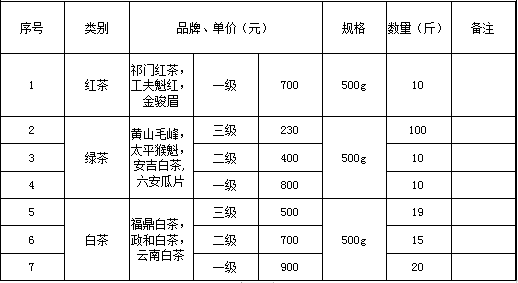 本项目是爱游戏官方网站2021年度茶叶采购项目,具体如下:![]() 注;1、二级三级茶叶采用盒装或罐装包装,一级采用礼品装包装(以采购方实际需求为准)。 2、重量为除去包装后茶叶净重要求。 3、本次茶叶采购具体数量可能略有变化,按照实际采购数量确定。 |