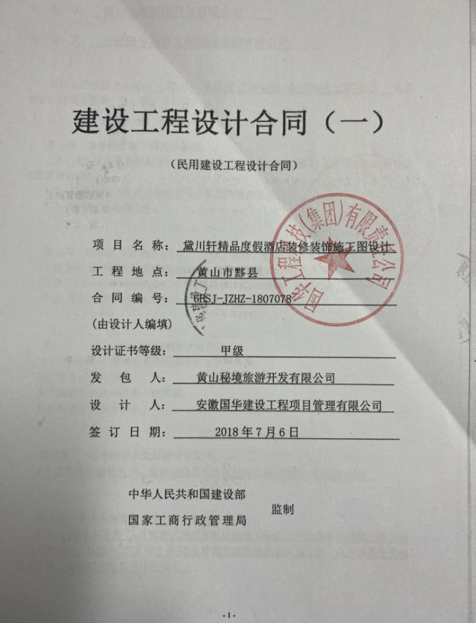 1、黛川轩精品度假酒店施工图设计 2、安徽鼎和大酒店 |