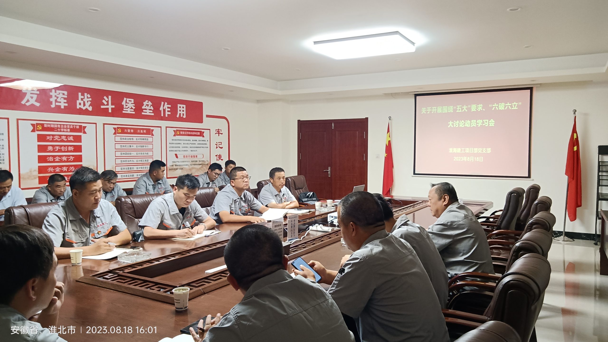 8月18日下午,淮海建工公司项目部党支部召开围绕“五大”要求、“六破六立”大讨论动员学习会,项目部党支部全体党员同志参加会议。