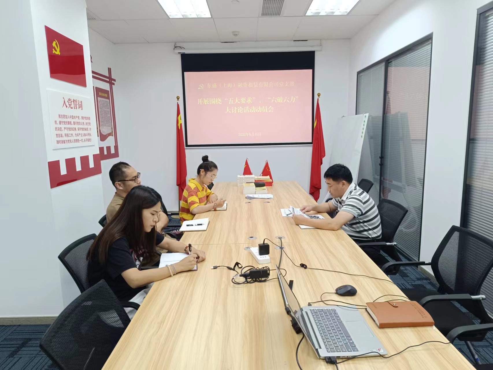 2023年8月16日下午,东盛租赁公司召开围绕“五大”要求、“六破六立”大讨论活动动员会。东盛租赁公司总经理王智主持会议,周慧茹、许南南、周云峰、王克参加了会议。