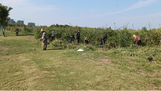党员干部和积极分子率先带头,配合物业人员、保绿人员对金沙戏水园区内的杂草、沙滩内的垃圾等进行清除,该次清理范围为环湖西路(从博瑞特南处停车场入口到人民路停车场再到南湖路处),长达约4公里,共计投入70余人次,20台余设备。