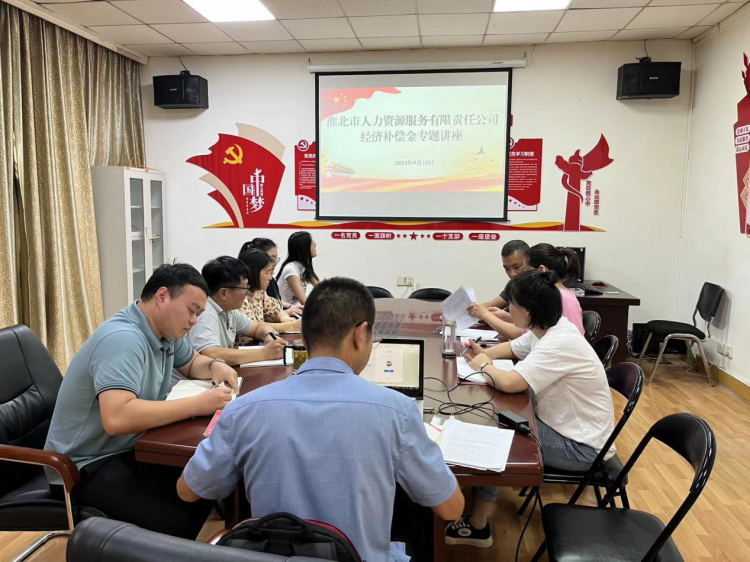 为了提高员工法律意识,加强业务经理对于劳务派遣人员合同解除、经济补偿金、违约金等条款细节把控,为合作单位提供更优质的服务,淮北市劳动保障事务代理服务有限责任公司(淮北市人力资源服务有限责任公司)于9月15日开展经济补偿金的专题讲座。