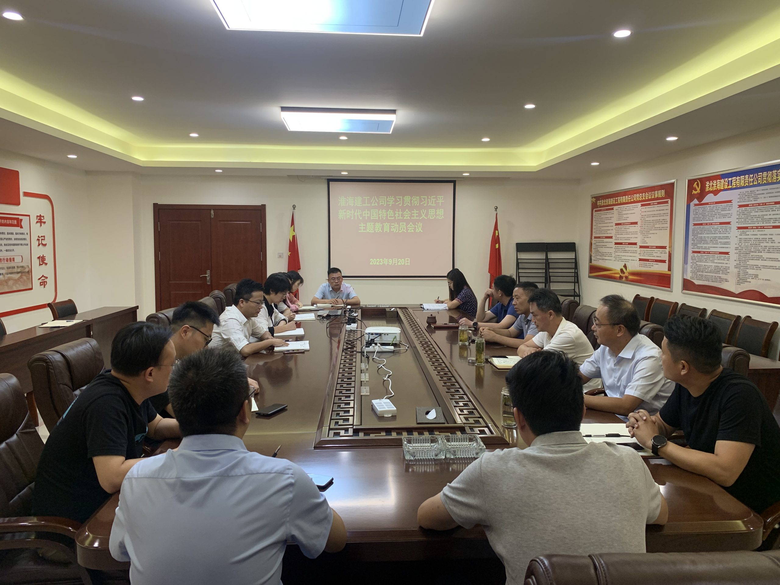 9月20日上午,淮海建工公司在三楼会议室召开学习贯彻习近平新时代中国特色社会主义思想主题教育动员会议,公司领导班子、各部室负责人参加会议。