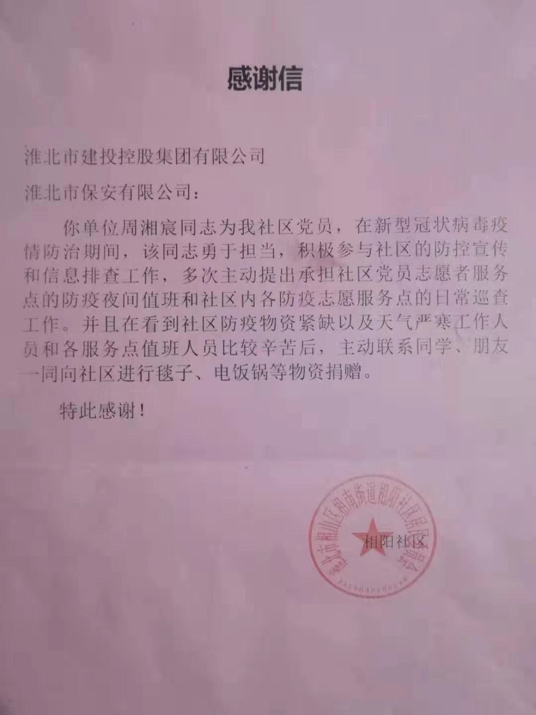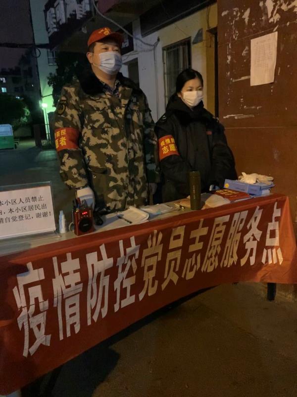 党员“三报道”期间,白天工作时间在单位值班,统筹春节假期和延期上班期间的各项日常运作工作,下班后积极帮助居住地社区逐楼逐户进行新冠病毒防控宣传、挨家挨户开展返淮人员信息排查;并且带着同为党员的妻子一同第一时间向社区报到,多次向社区主动提出承担夜间防疫责任,执行党员志愿服务点夜间值守和日常巡查工作,成为奔赴抗疫前线的夫妻档“逆行者”。