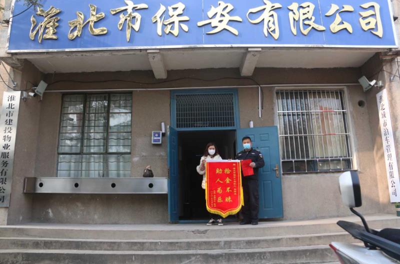 2020年3月5日18时40分,淮北市保安有限公司押运四中队朱振昌同志,下班途经万马庭院小区时,在路边拾到女士包一个,经查看包内有大量现金(约7—8千元)、手机两部、银行卡若干及一些重要资料物品,该同志没有将外来之才占为己有,及时向中队和公司领导汇报情况并在原地等待失主,30分钟后发现一名神色慌张的女士似乎在寻找什么,经上前询问失主因家里有急事,需大量用现金,丢失钱包心情十分着急,在全面核实确认后,最终将物品归还到失主手中,对此失主表示万分感谢!