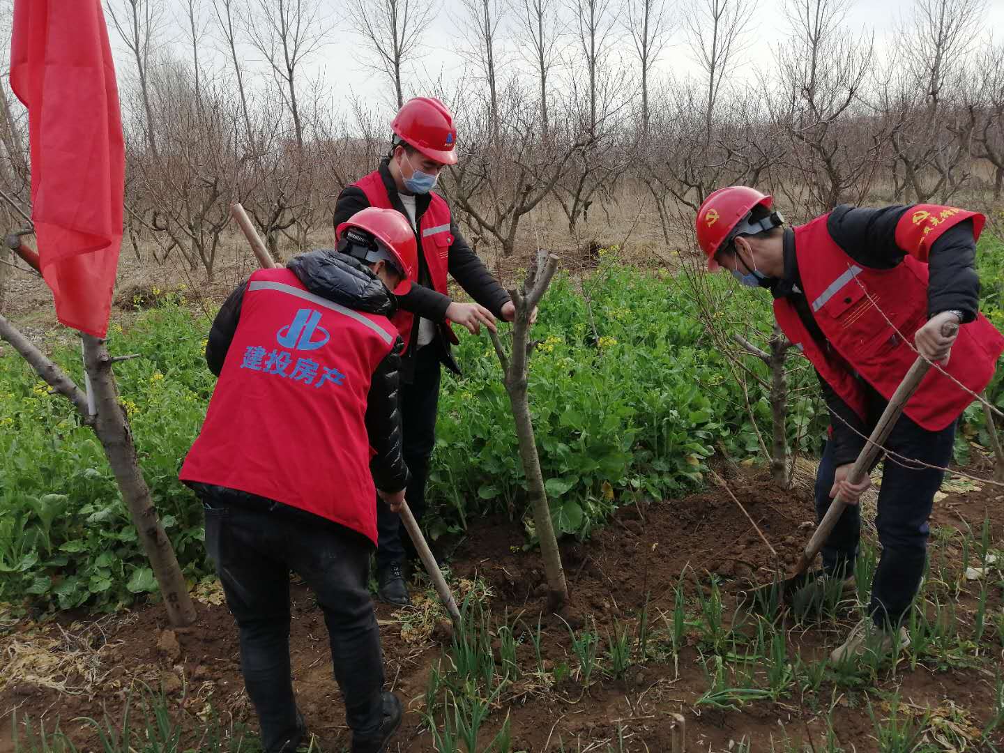 植树添绿,青年行动。连日来,房地产公司早谋划、早宣传、早行动,以在建项目为单位,积极组织青年员工开展“义务植树”活动。活动中,各项目部以小型、分散的方式,大家或两人结对或三五人一组,扶苗、填土、培实、浇水,分工明确,相互配合,干劲十足。一铲铲泥土的填充,一滴滴汗水的流下,一棵棵树苗的载种,公司广大青年用实际行动传播绿色希望。