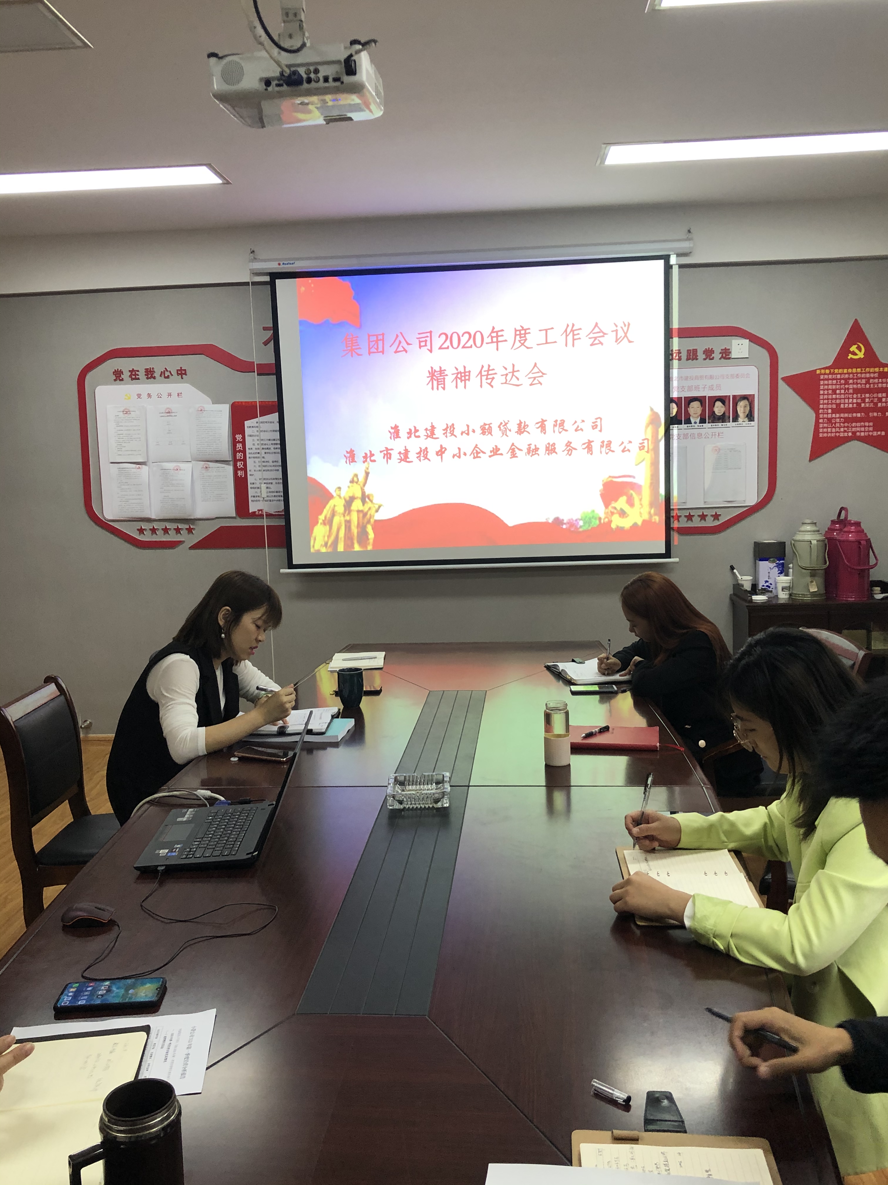 2020年5月8日上午,小贷党支部在金控三楼会议室召开集团2020年度工作会议精神传达会,小贷公司和中小企业全体员工参加会议,会议由赵莹莹主持。