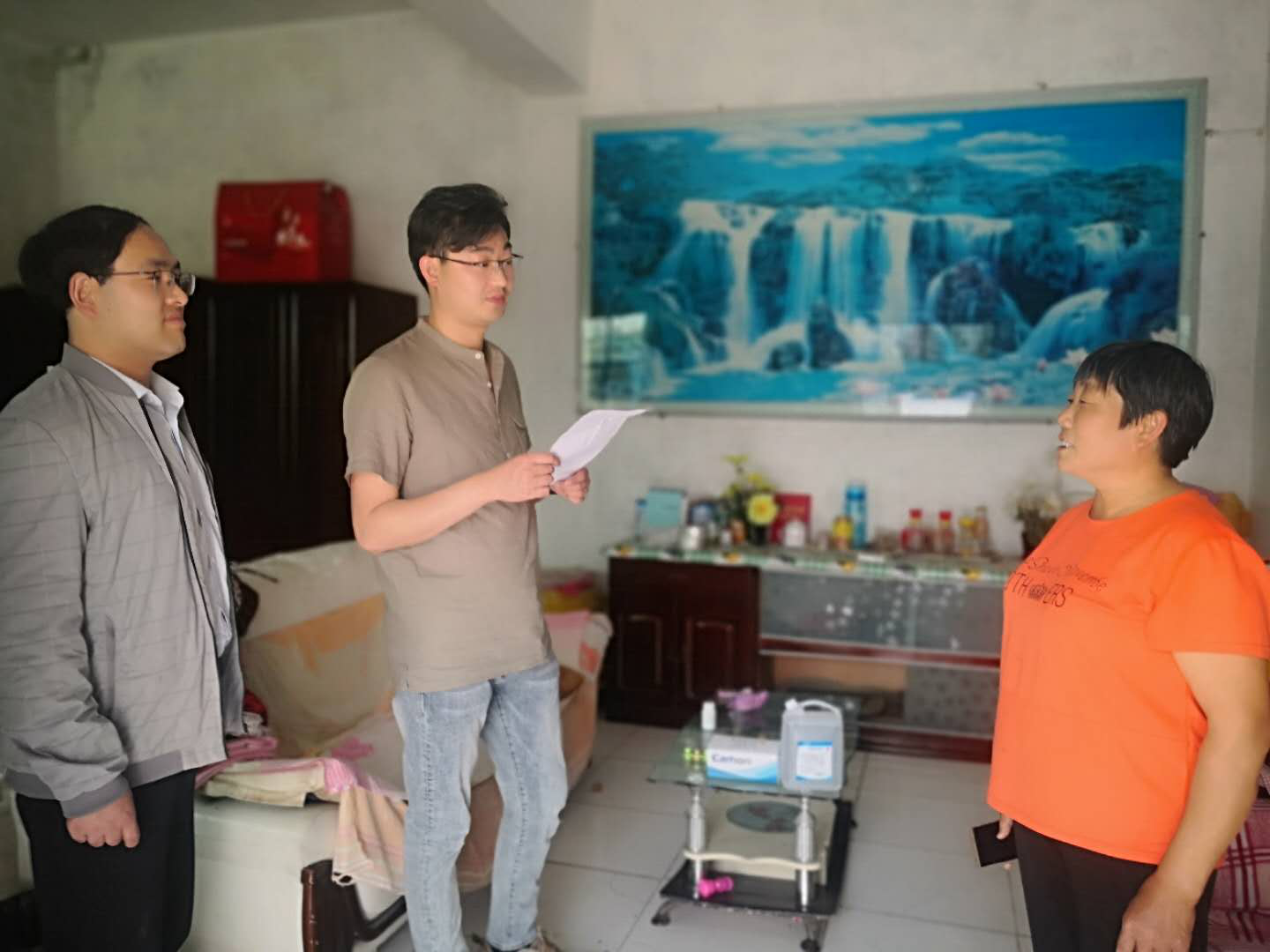 5月22日下午,房地产和商贸党支部一行5人深入火神庙村开展走访慰问帮扶户活动,给2户帮扶户送去了酒精、口罩等防疫必需品,让帮扶户可以顺利抗疫。