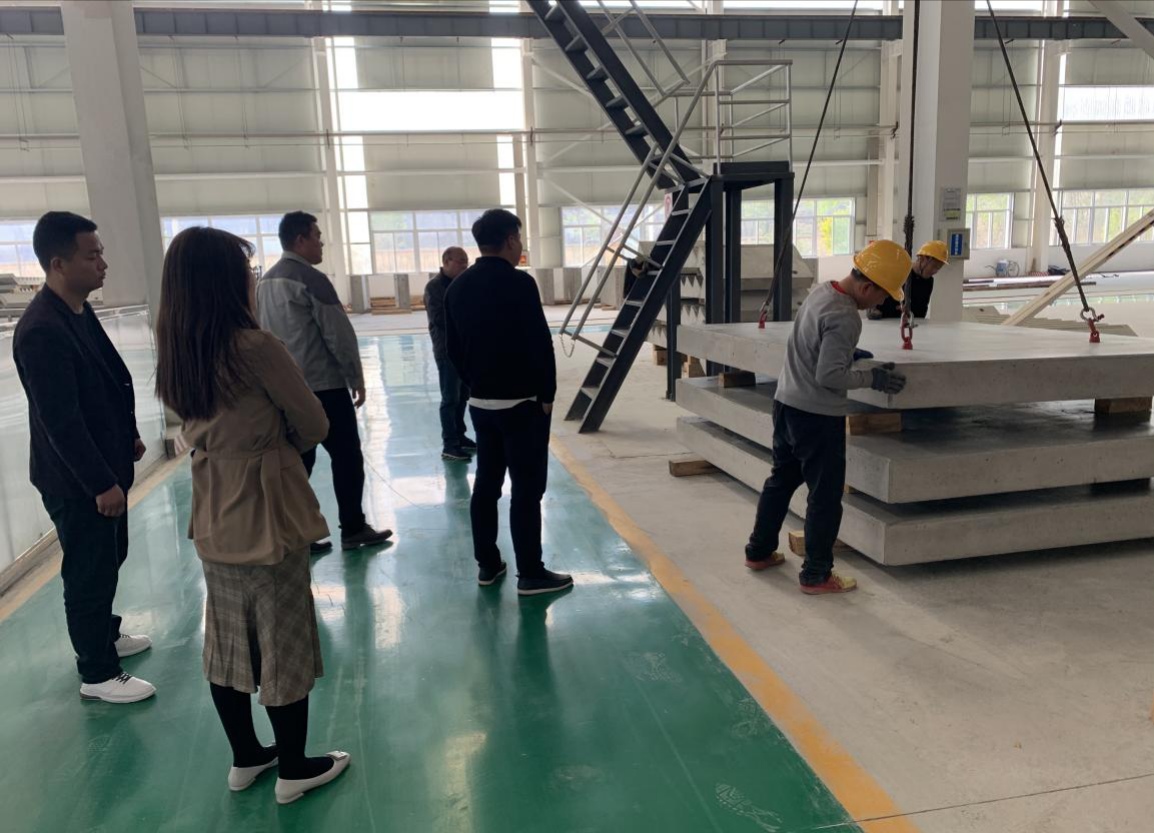 图为现场考察安徽中冶淮海装配式建筑有限公司标准化生产车间。