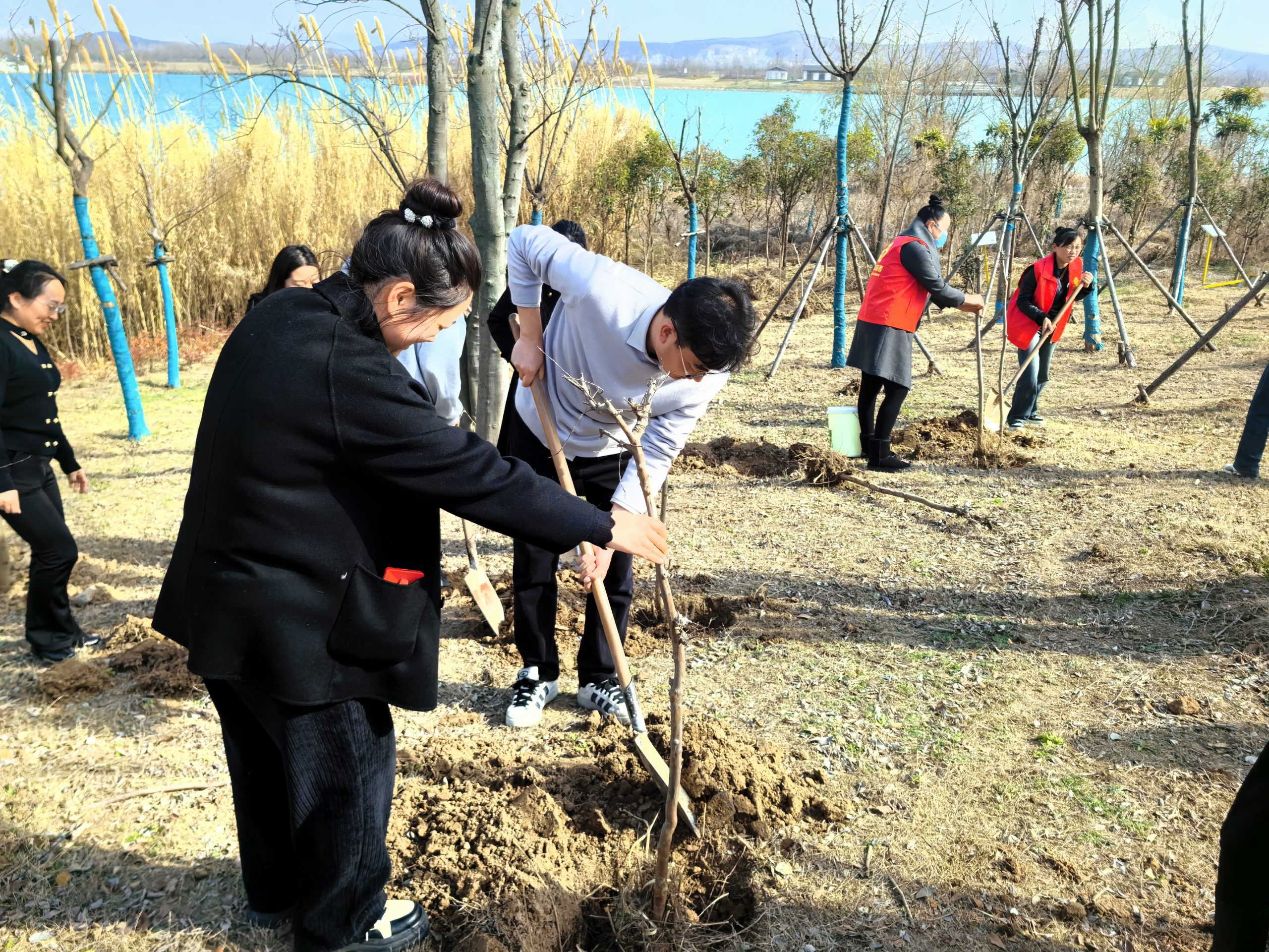 阳春三月,春风涌动。在第46个全国植树节到来之际,为深入学习贯彻习近平生态文明思想,践行“绿水青山就是金山银山”的理念,3月11日下午,相山区妇联联合淮北市建投房地产党支部,共计30余名党员到绿金湖开展“同植巾帼林·圆梦绿金湖”植树主题党日活动。