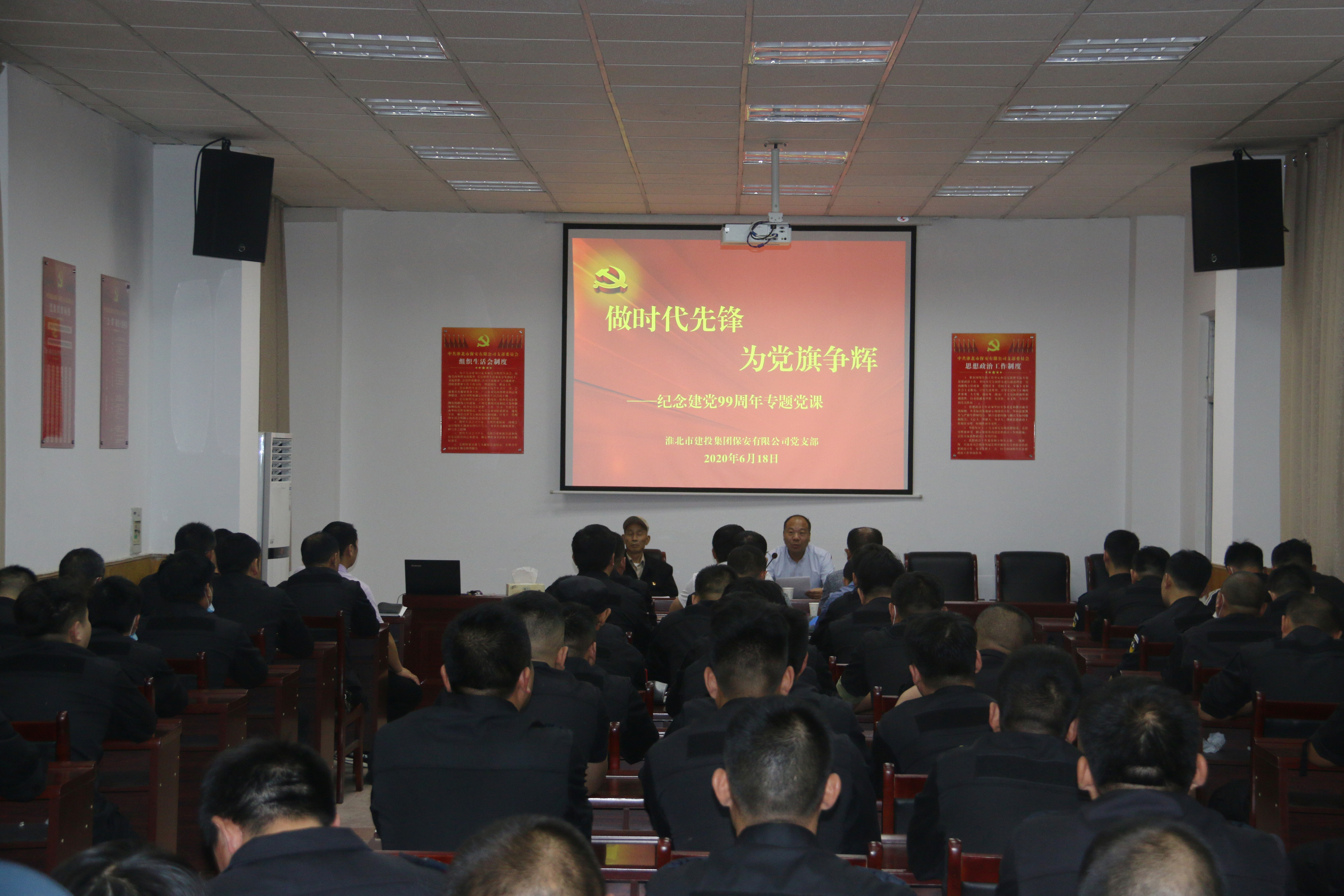 6月18日,保安公司党支部在六楼会议室组织开展迎“七·一”老党员讲党课活动。此次党课特邀请相山区徐度乐事迹馆义务讲解员徐度刚老党员到公司讲授党课,党课结合保安公司工作实际,围绕共产党人的初心和使命,着重讲解如何加强政治理论学习、提高政治思想觉悟、立足岗位做贡献三个方面进行了全面的深入讲解和阐述,既深刻又实在,深入浅出,入情入理,为保安公司各项工作稳步推进奠定了坚实的思想基础。