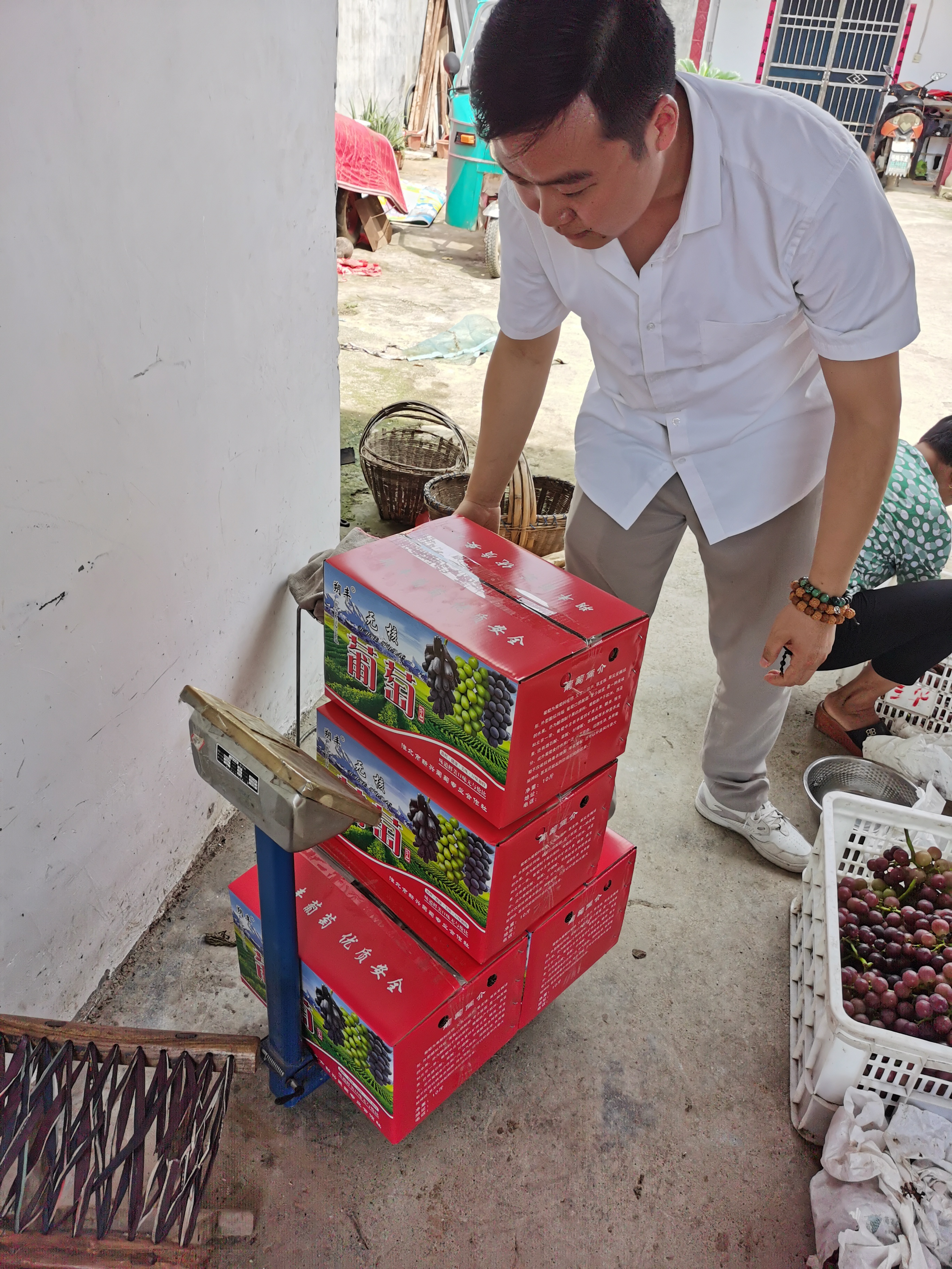 在了解到帮扶户家中种植的葡萄产量在雨水影响下,减产损失较重,直接经济损失大约2万元,支部副书记赵莹莹现场自费购买70多斤,并联系几家水果采购商洽谈销售问题。