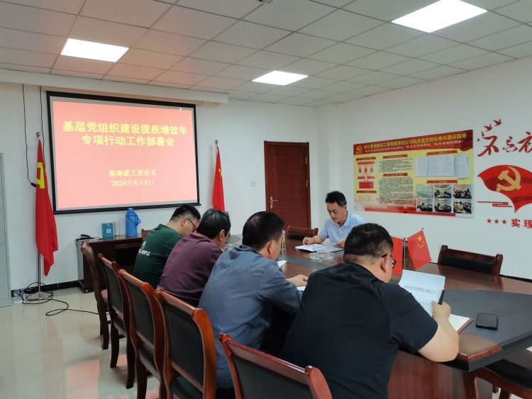 6月5日下午,淮海建工公司党总支在公司二楼党员活动室召开“基层党组织建设提质增效年专项行动”工作部署会。各支部书记、副书记参加会议。
