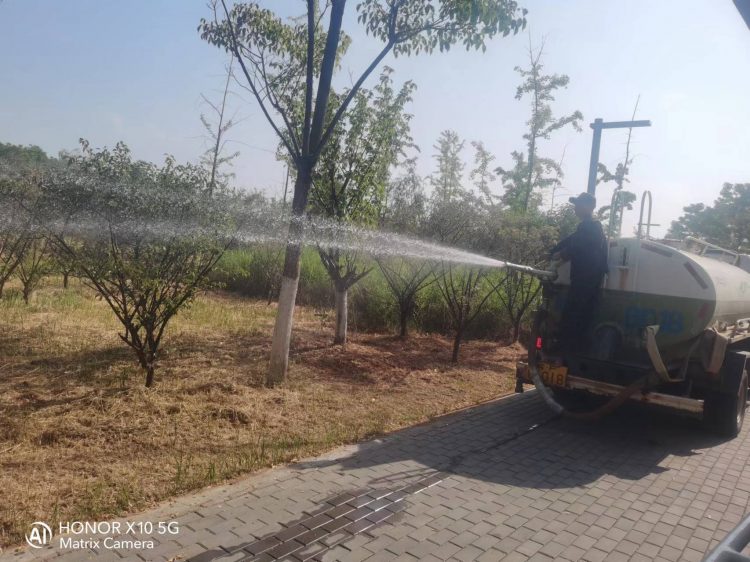 一是采取水车浇水、自动喷灌、人工洒水等多种浇灌方式,对干旱严重的区域重点浇灌,确保做到细浇慢灌,浇足浇透。二是更新设备借助科技力量,在绿金湖公园新增自动喷淋系统,既满足草坪、小灌木、树木生长的需要,又比传统人工浇水更加省时省力,大大提高了用水效率。三是合理调整作业时间,采取每天上午提早作业,下午推迟作业的方式,避开高温时段进行浇灌,防止出现植株灼伤现象。四是做好人员保障,准备充足的饮用水和防暑药品,督促一线工作人员做好防护措施,避免晒伤、中暑等情况发生。
