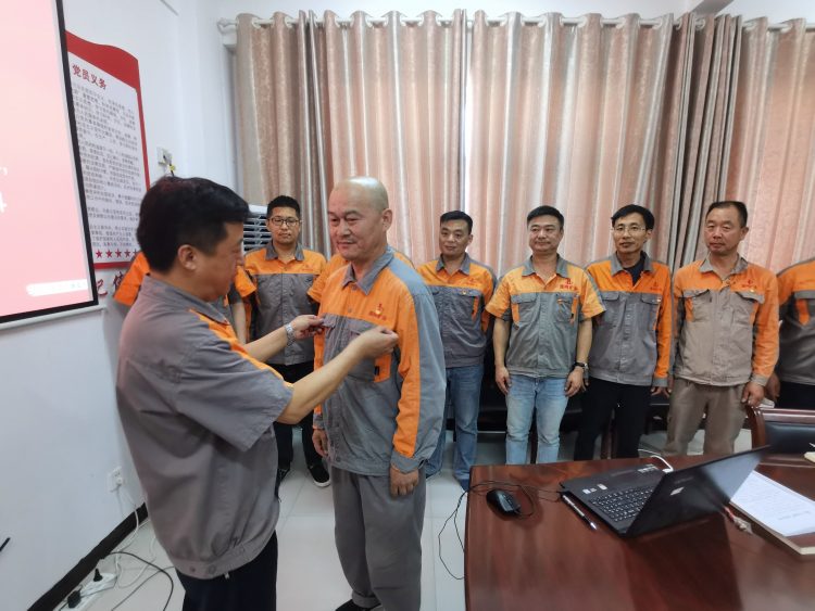 最后,支部副书记刘鹏带领大家重温入党誓词,并给新发展的党员同志佩戴党徽。他强调,全体党员干部要以此次学习为契机,深入学习党纪规定,筑牢思想防线,切实增强“四个意识”,坚定“四个自信”,做到“两个维护”。