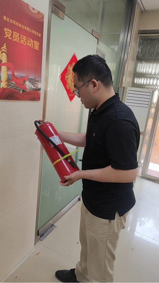 6月初,典当召开动员大会,传达文件精神,明确活动安排,要求全体人员始终把安全生产放在各项工作的首要位置;通过“党建一点课”、“主题党日”等学习方式,全面领会习近平总书记关于安全生产重要论述的精髓要义,强化安全生产的责任意识;同时树立全体员工参与意识,通过电子屏口号滚动宣传、张贴安全宣传海报,深入开展全员安全生产教育,营造安全办公氛围;开展“排除隐患大行动”活动,公司全体员工参与,排查固定的工作场所的安全隐患,不留死角,不留盲区,查看灭火器放置的位置、灭火器的压力、是否处于有效期内,从而确保灭火器能够正常使用。