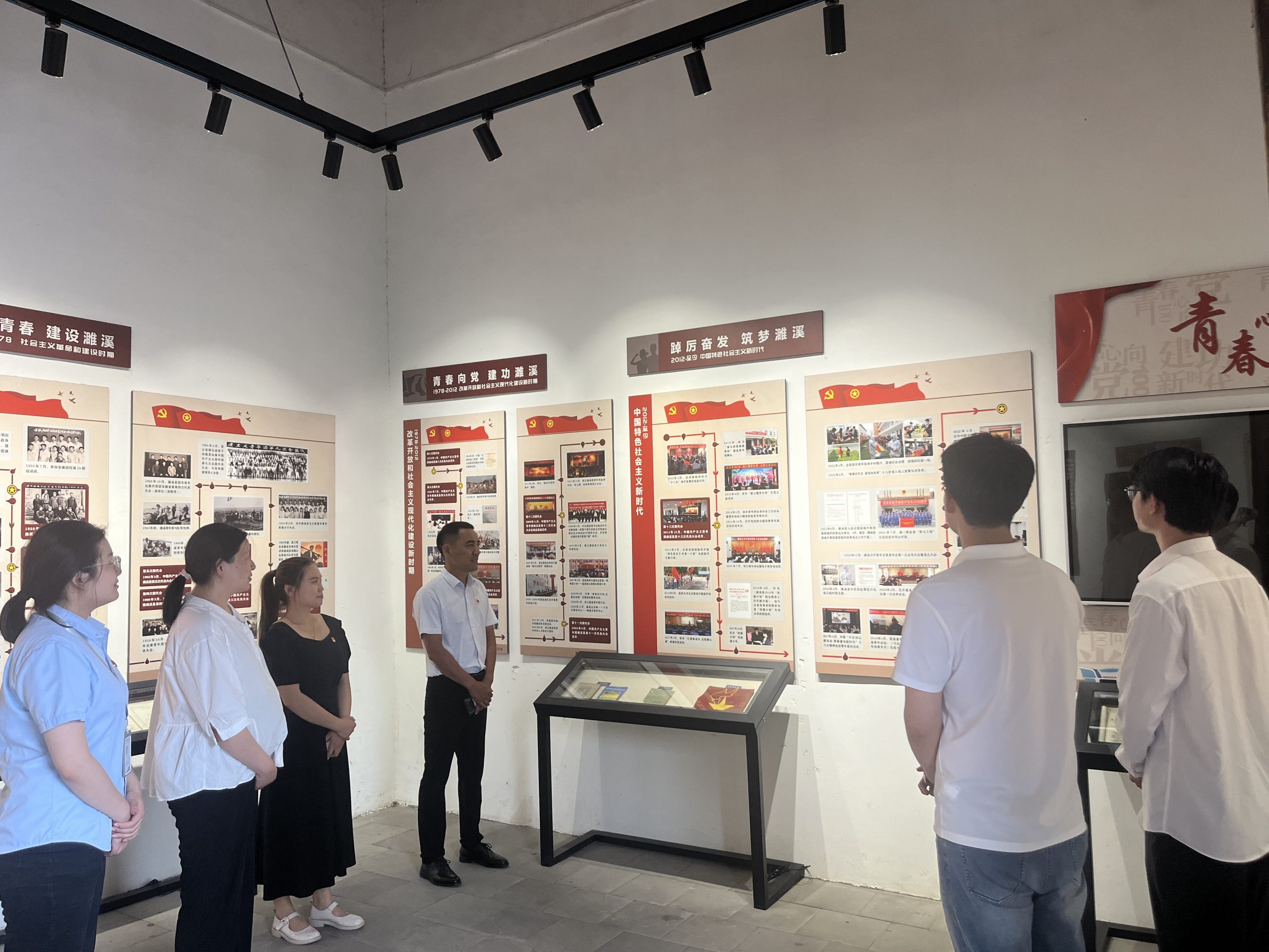 在濉溪石板街,党员们走进中共濉溪支部陈列馆,陈列馆内容分为四个部分:马克思主义在濉溪的传播、中共濉溪支部的成立、濉溪党组织发展壮大以及濉溪早起党史人物。一幅幅历史画面、一件件文物展现了当年党支部成立时的场景,展示着建党初期的濉溪革命史实。