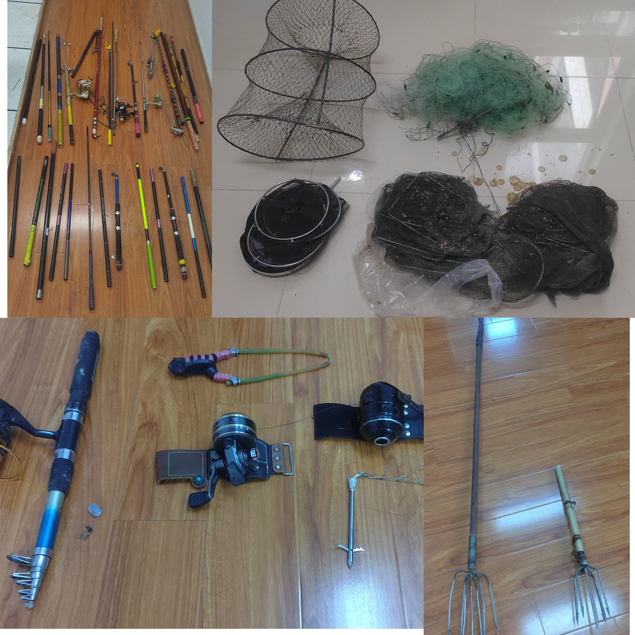 行动中,工作人员发现并没收了偷钓者使用的鱼竿共计70余把,弹弓射鱼器10余把,甲鱼捕捉器20余个,撒网2个,鱼叉2个,这些鱼竿不仅破坏了水生生物的生存环境,也严重威胁到游客的自身安全。同时清理了藏匿于水下的地笼20余个,捕渔网300余米,这些非法捕鱼工具严重破坏了水生态系统的平衡,是此次清理的重点对象。工作人员还劝离野游人员约570人次,通过现场讲解、发放宣传资料等方式,向他们普及了水域安全知识及保护生态环境的重要性。设立“珍爱生命,远离危险水域;保护环境,从我做起”等温馨提醒标示牌,让安全意识深入人心,得到大家的积极响应和支持。