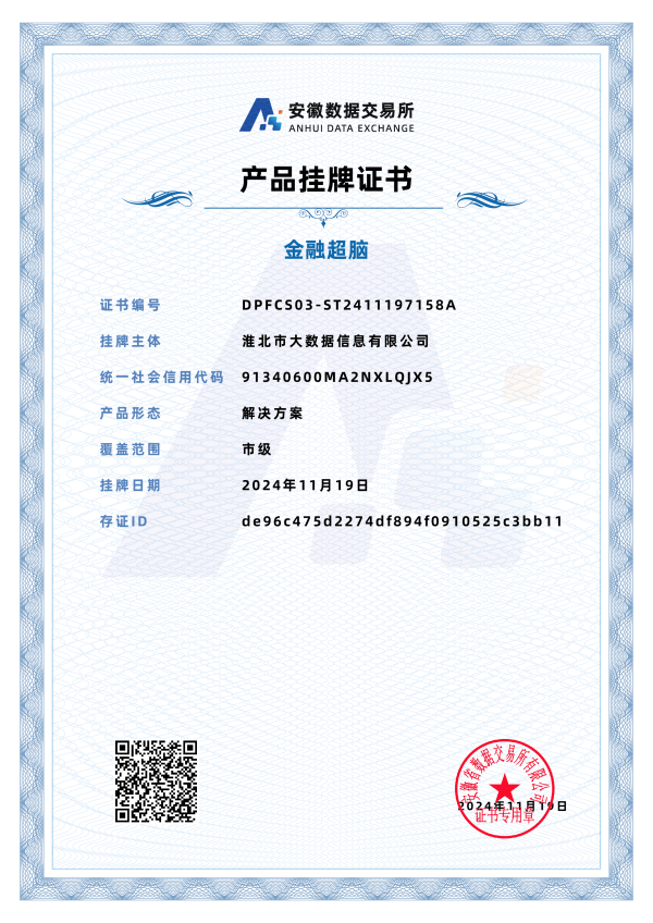 数据产品挂牌上市正式开启数据交易之旅,持续扩大“金融超脑”产品的影响力,促进我市普惠金融业务均衡发展,推动大众创业、万众创新,助推经济发展方式转型升级。同时,凭借在金融超脑平台上的普惠金融助贷数据集,淮北市大数据信息有限公司顺利申请到数据知识产权,进一步彰显了公司在数据资源开发利用与合规管理方面的卓越能力与前瞻性布局。