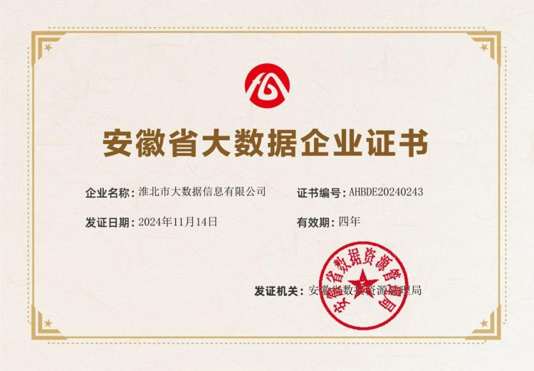 为加快实施“数据要素×”行动,培育数据要素型企业,持续推动数据产业发展,安徽省数据资源管理局组织了省级大数据企业的认定。经企业自评、线上申报、市级初审、专家评审、审查认定、公示等流程,近日,安徽省大数据企业评定结果正式揭晓,淮北市大数据信息有限公司获评2024年度安徽省大数据企业认证。目前淮北市共有省级大数据企业10家、市级大数据企业38家。此次入选,不仅是对我司在大数据业务上的认可,也有力地提升了我司的品牌形象和市场竞争力,标志着我司在推动淮北数字经济发展上迈出了坚实步伐。