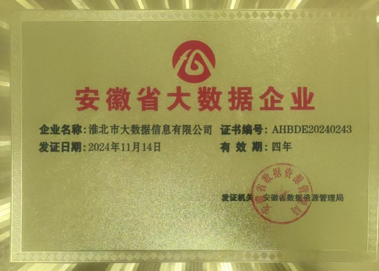 在集团党委坚强领导下,在市数据局精心指导和兄弟单位的大力协作下,我司大胆创新、大力营销,在大数据领域不断深耕拓展,强化数据治理能力,丰富数据应用场景,积极探索创新业务模式。2023年公司营业收入近1500万元,经省数据资源局组织行业专家进行评审,公司通过了安徽省大数据企业认证。近日参加了省级大数据企业座谈会暨授牌仪式并在会上进行经验交流,分享在大数据领域的成功案例和探索历程。