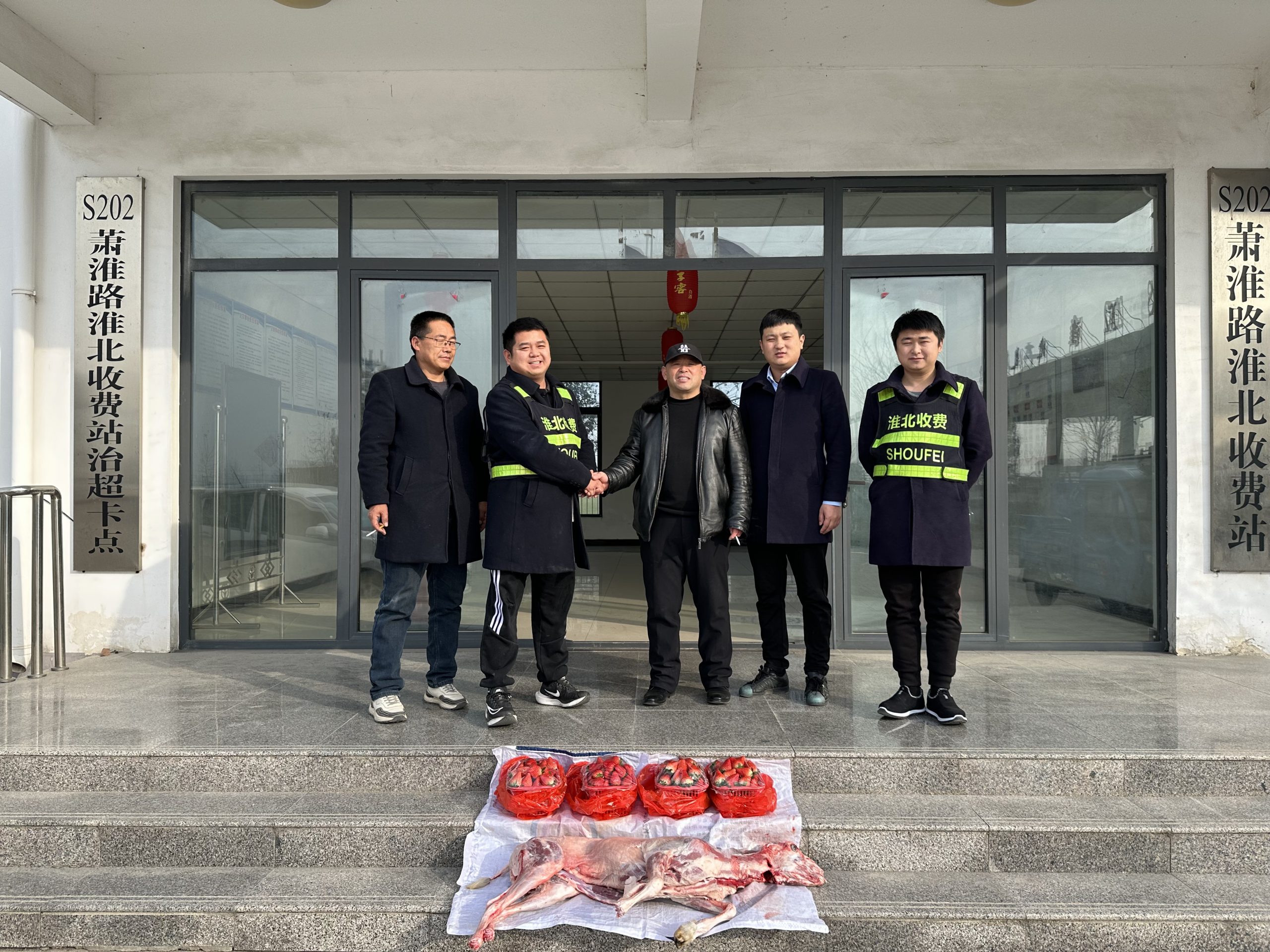 在新年即将来临之际,临涣镇夹河村党总支书记、村委会主任杨明一行,带着节日的问候和真挚的关怀,来到融通公司S202收费站,为坚守岗位的职工们送来了慰问品,并致以新年的美好祝愿。
