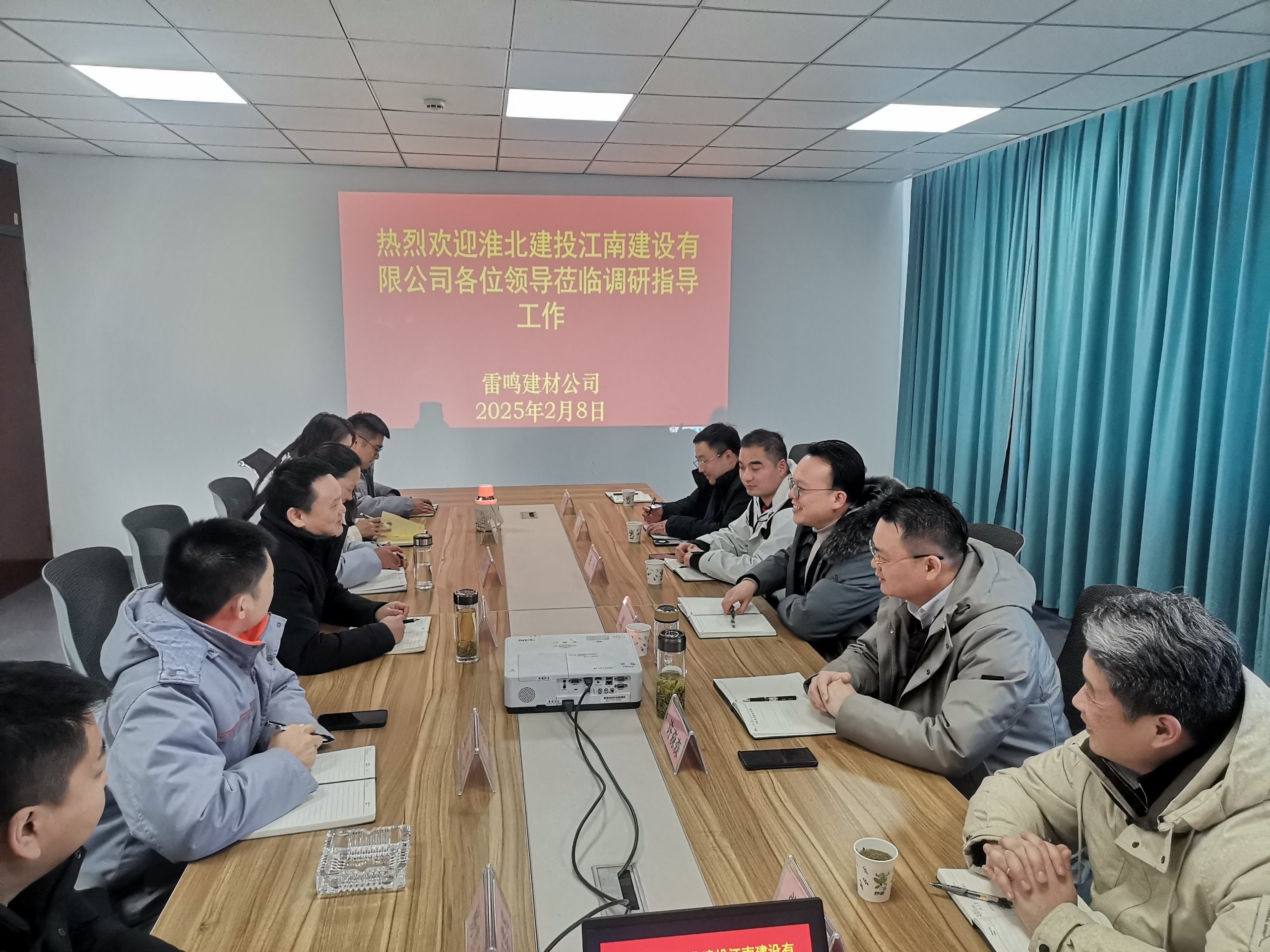 2025年2月8日江南建设公司负责人周昊组织团队前往安徽雷鸣建材有限责任公司开展节后学习交流活动。此次活动旨在通过实地参观、深入交流,学习安徽雷鸣建材有限责任公司在经营管理、产品创新、市场拓展等方面的先进经验,同时增进双方之间的了解和信任,为今后的合作奠定坚实基础。