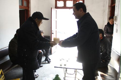 2011年12月10日上午,爱游戏官方网站党组书记、总经理任启峰、副总经理宋平等领导同志来到烈山区宋疃镇雷山社区看望贫困党员,并送上了米、油等生活用品。