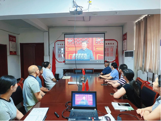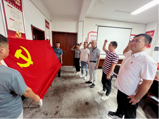 活动开始,全体人员集中观看纪念中国人民抗日战争暨世界反法西斯战争胜利80周年大会。观看过程中,大家保持安静肃穆,认真感受阅兵仪式所展现出的国家强大军事力量和军人昂扬风貌,深刻体会到其背后蕴含的深厚爱国情怀与民族精神。整齐划一的受阅方阵、先进精良的武器装备,让全体党员心灵受到极大震撼,自豪感油然而生。阅兵仪式结束后,全体党员面向鲜红的党旗,庄严地重温入党誓词。“我志愿加入中国共产党,拥护党的纲领……” 铿锵有力的誓言在会议室久久回荡,字字千钧,叩击着每位党员的心灵。这不仅是对初心使命的回溯,更是一次精神的淬炼与升华。