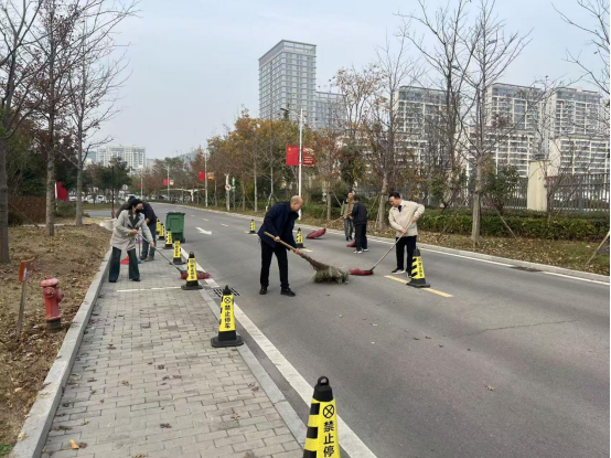 活动现场,大家分工协作,先把主通道的落叶清开,确保车辆进出顺畅,再逐个清理车位上的落叶。参与人员热情高涨,迅速分成多个小组,有的负责用扫帚将散落在各处的落叶归拢成堆,有的手持簸箕将落叶装入垃圾袋,大家配合默契、干劲十足。经过近3个小时的集中清扫,停车场环境焕然一新,车位线清晰可见,车辆进出秩序井然。