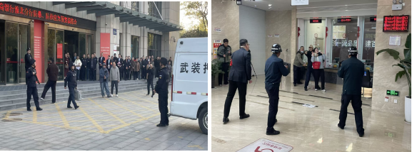 本次演练聚焦实战化要求,设置两大高风险场景,场景一:武装押运车组遭遇“歹徒”暴力抢劫;场景二:营业网点遭遇“歹徒挟持人质”抢劫,全流程模拟突发事件处置。