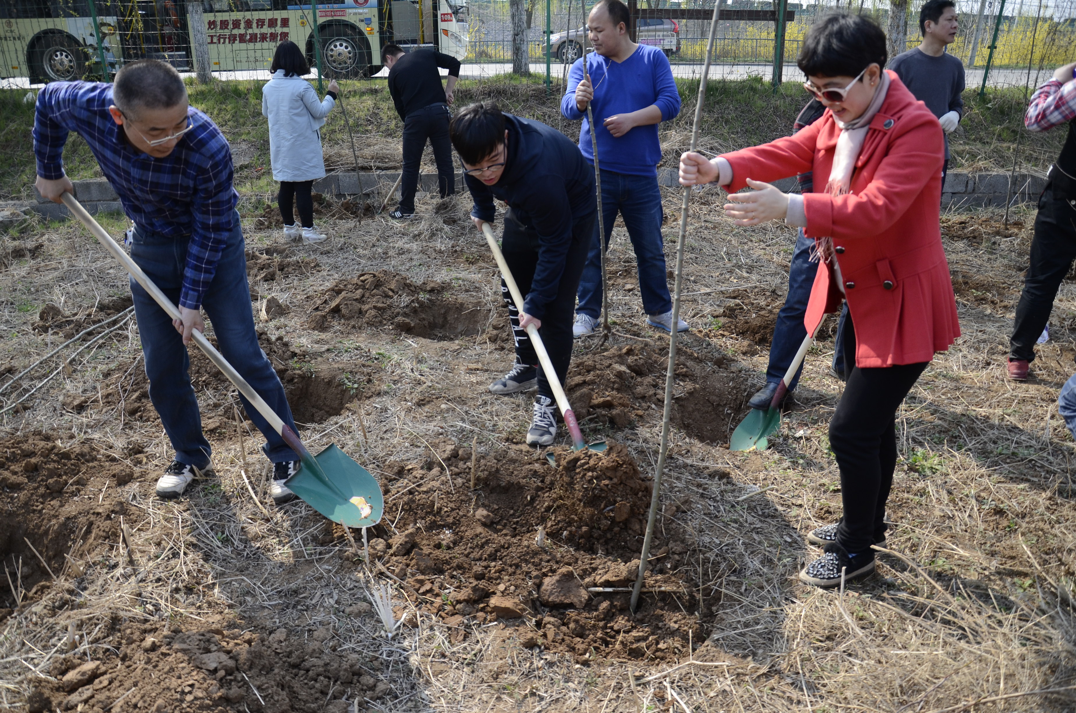 在植树现场,大家拿起铁锹、锄头互相配合开始植树。有的挥锹铲土、有的扶树填土、有的培土浇水,忙得不亦乐乎。经过三个多小时的劳动,420棵西府海棠在绿化带里 “安家落户”,为那里添上了一片新绿。