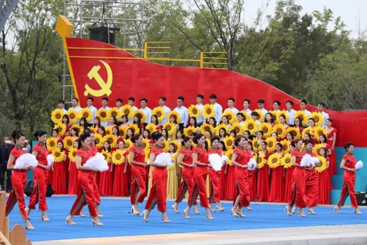 江山万里霞光红,淮北大地踏歌声。党旗指引阳光路,齐心共筑中国梦,演出在《没有共产党就没有新中国》的歌声中拉开帷幕。歌伴舞《南湖的船》、合唱联唱《唱支山歌给党听》《我们共产党人好比种子》《党啊亲爱的妈妈》《革命人永远是年轻》等脍炙人口的歌曲唱出了全体党员的心声,唱出了对祖国母亲的深情厚谊。凝聚各方力量,鼓足转型发展干劲,落实“四转一享”,勇闯率先崛起新路,市委、市政府确定的中国碳谷·绿金淮北战略是对五大发展理念的贯彻落实,是省委、省政府决策部署在淮北的具体实践,舞蹈《绿金淮北创造者》艺术化地呈现了我市蒸蒸日上的发展景象和干部群众斗志昂扬的精神风貌。转型崛起“绿金”引领,新的征途中高歌猛进,转型升级“绿金”起航,创新大道上行稳致远,一曲《绿金恋歌》将整场演出推向高潮,现场响起雷鸣般掌声。演出最后在《共筑中国梦》的歌声中落下帷幕。