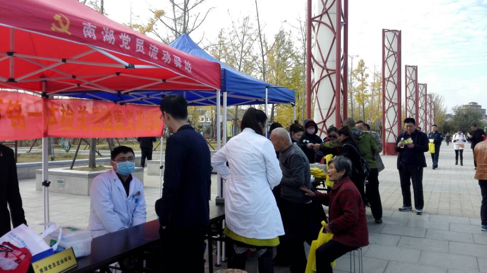 活动现场,党员志愿者张贴党的十九大宣传海报、摆放党的十九大宣传展架,向广大游客发放党的十九大宣传单,并组织开展义诊活动,得到广大游客的热情欢迎。