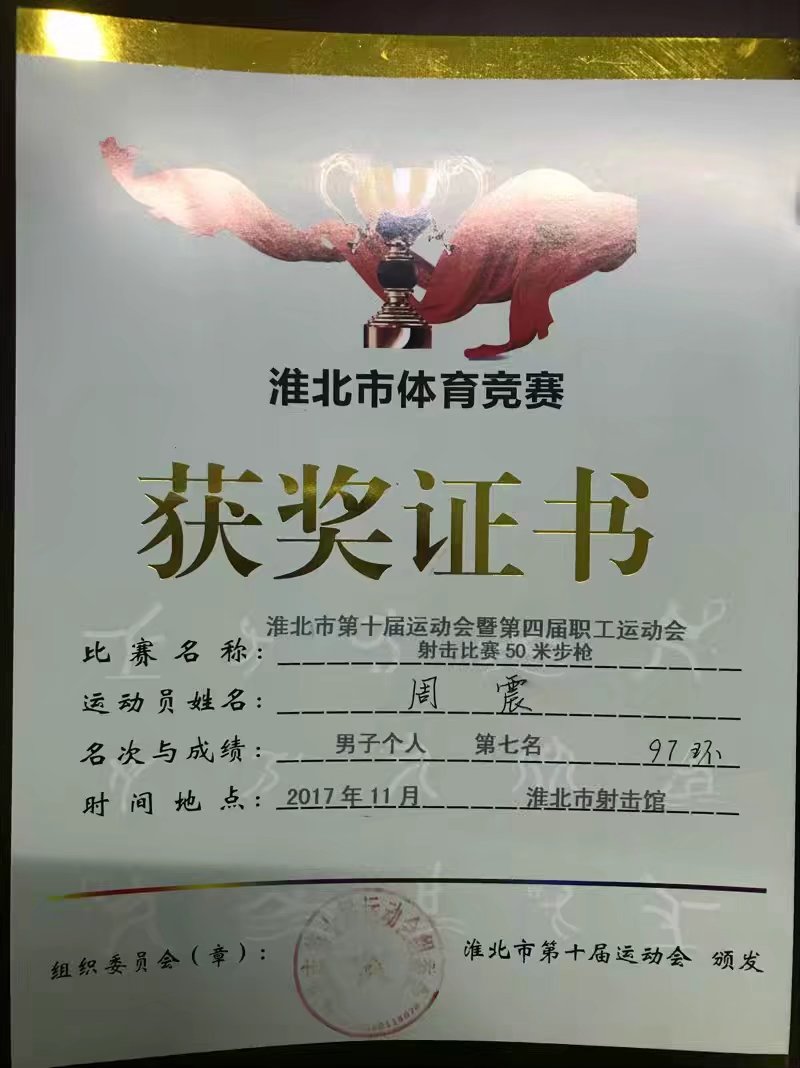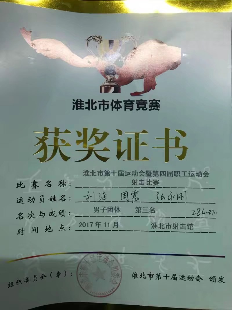 市建投集团在淮北市第十届运动会暨第四届职工运动会射击男子组比赛中荣获佳绩