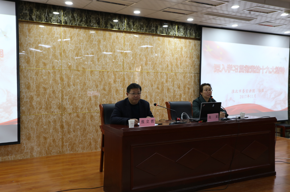 为深入学习宣传贯彻好党的十九大精神,帮助广大党员干部群众学习好、领会好、落实好会议精神,11月24日上午,省委讲师团第九期“送理论进基层”走进淮北市建投集团。淮北市委宣讲团成员、淮北职业技术学院党委委员、副院长、教授、博士张亚为淮北市建投集团广大党员干部宣讲了党的十九大精神,来自集团公司的党员干部近200人聆听了宣讲。